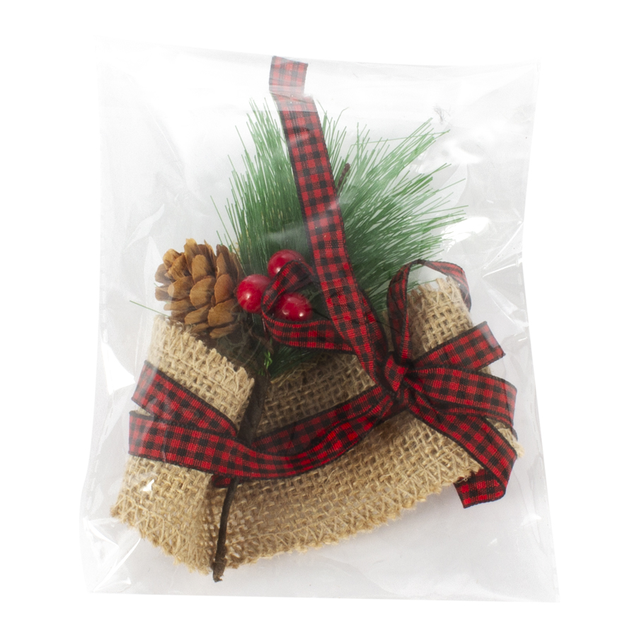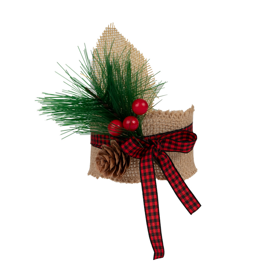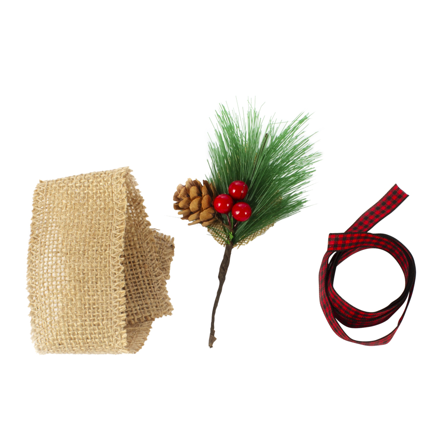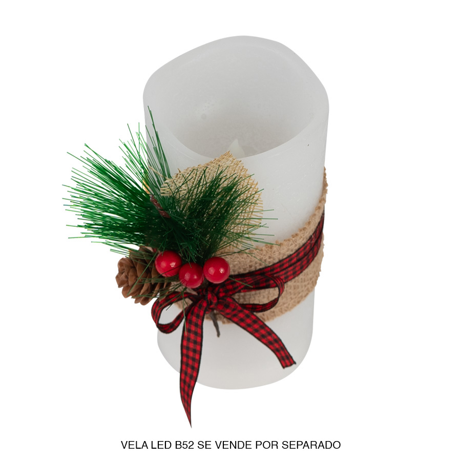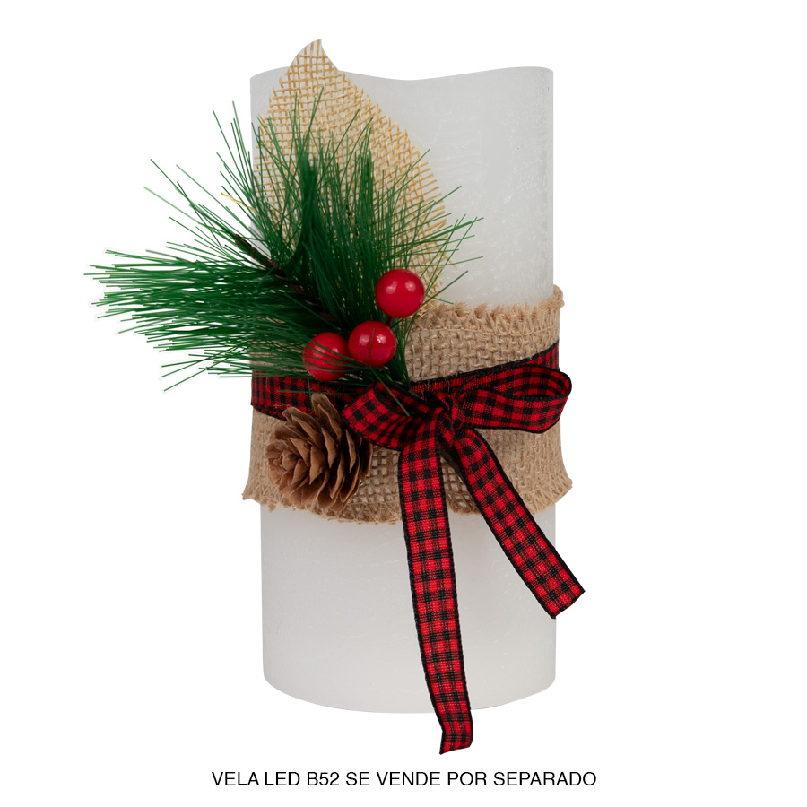 Adorno decorativo de yute, cinta y pino, para vela B52.