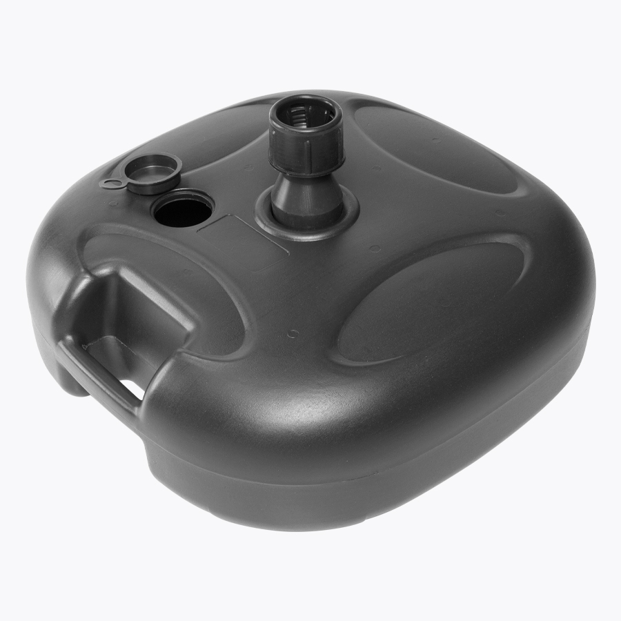 Base plástica cuadrada rellenable (con arena o piedrecilla, para darle mayor peso), con una capacidad total de 18kg