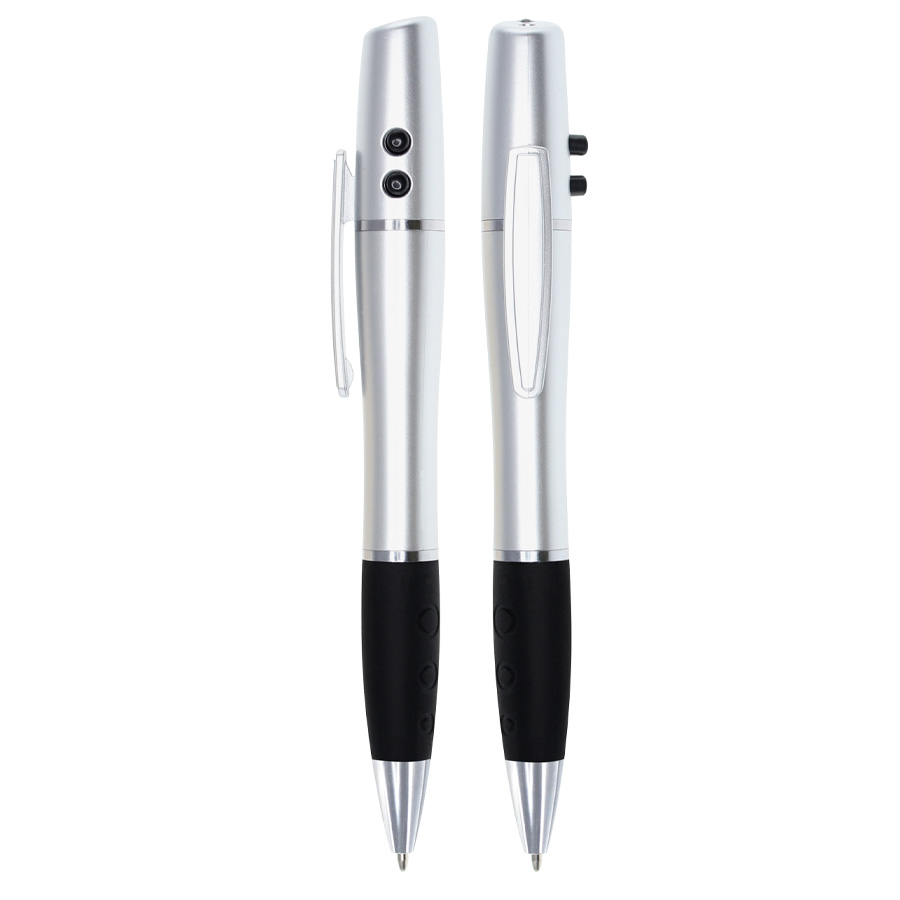 Bolígrafo plástico multi-función 3 en 1. Incluye bolígrafo, linterna LED y puntero láser. Escritura negra.