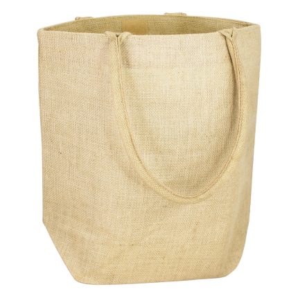 Bolsa de Yute modelo «Rain Forest», con recubrimiento laminado interior. Fuelle de yute teñido color. Manillas de cordón acolchado de yute teñido color de 45 x 1.5 cm. aprox. c/u.