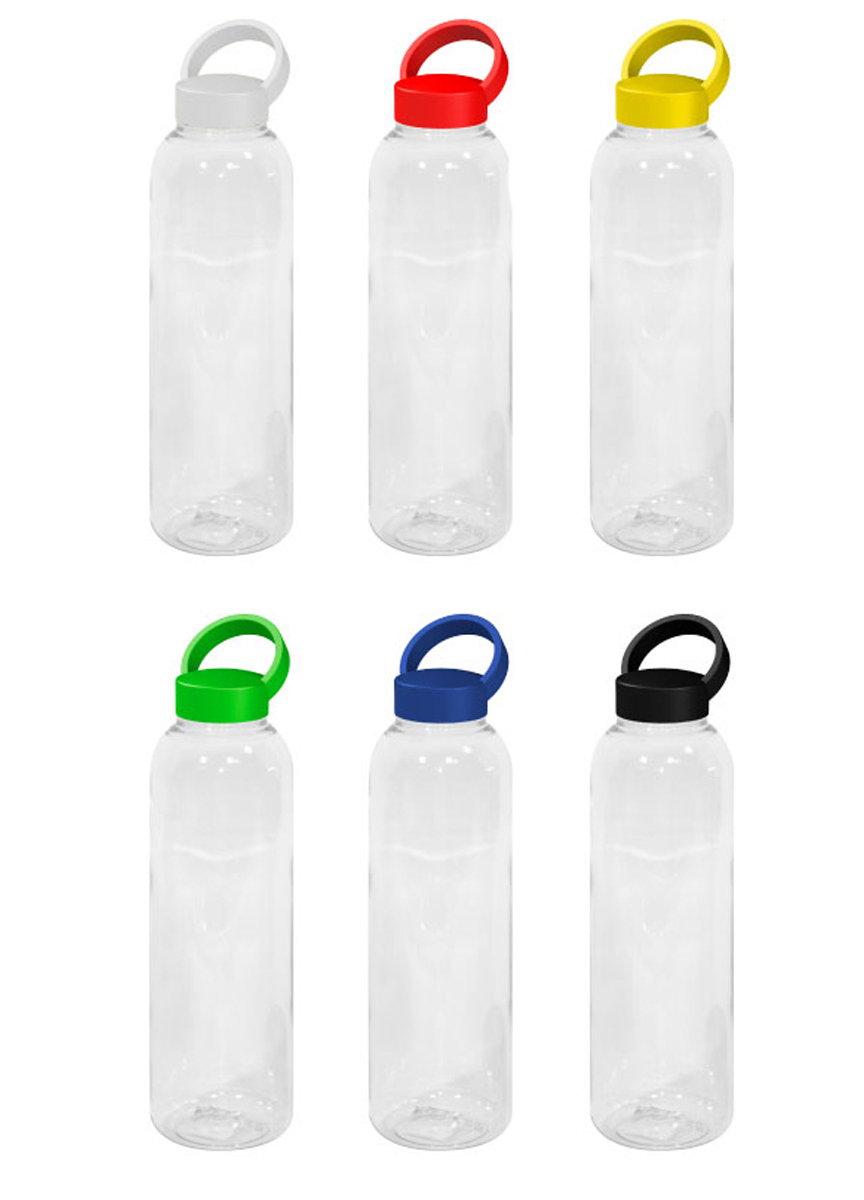 Botella de plástico transparente con tapa a rosca plástica.