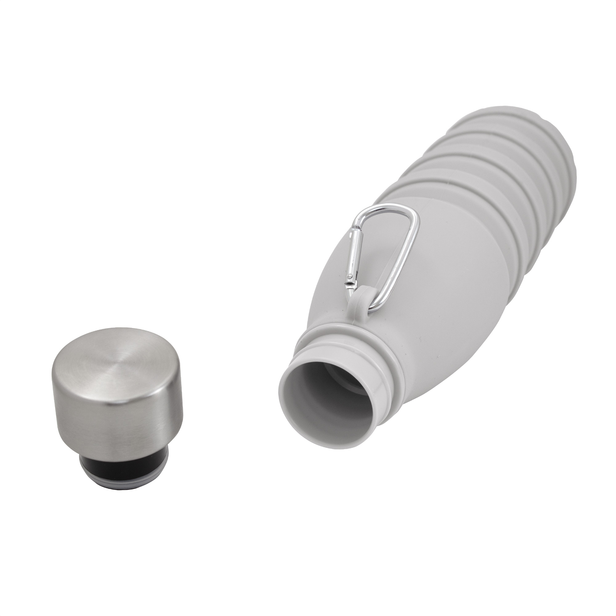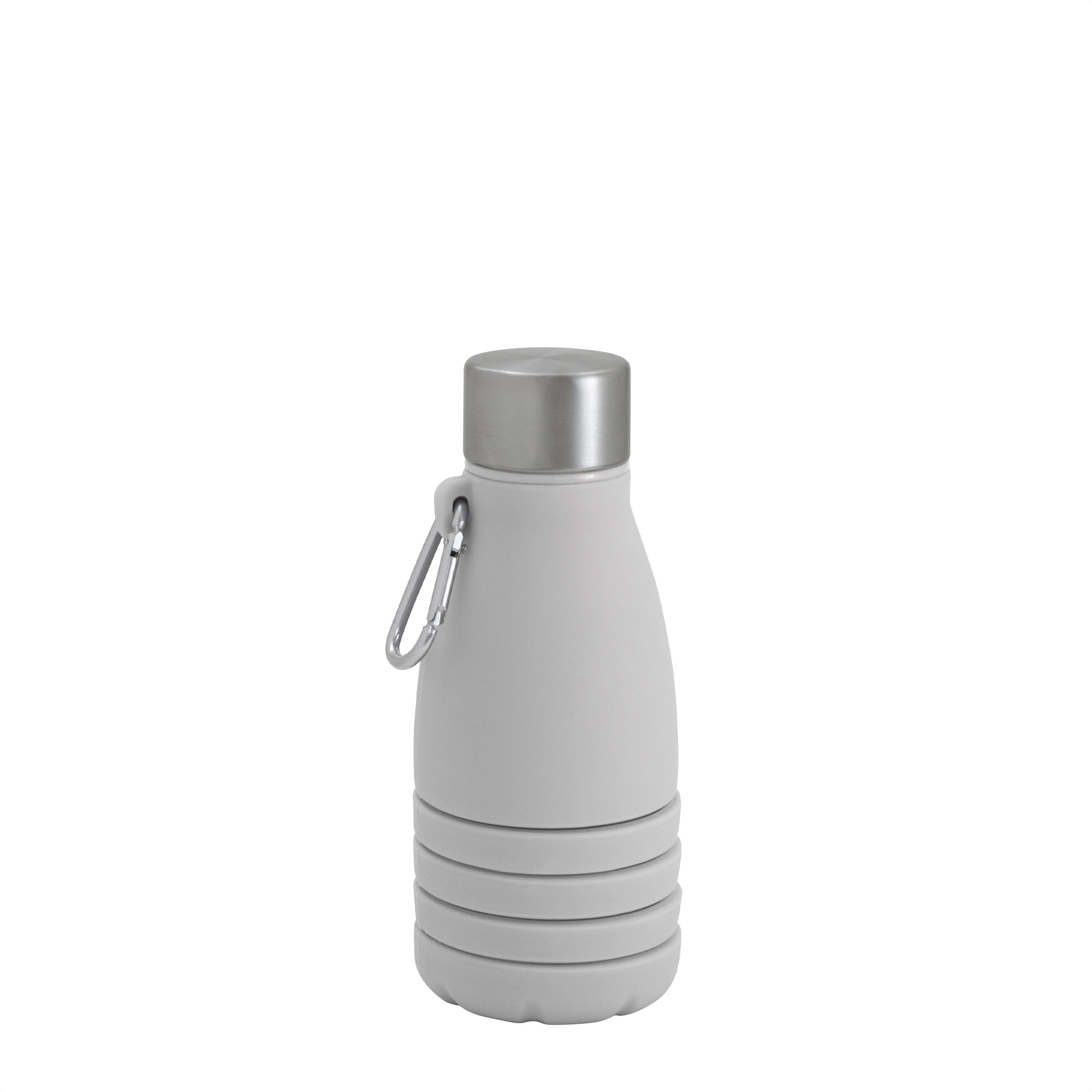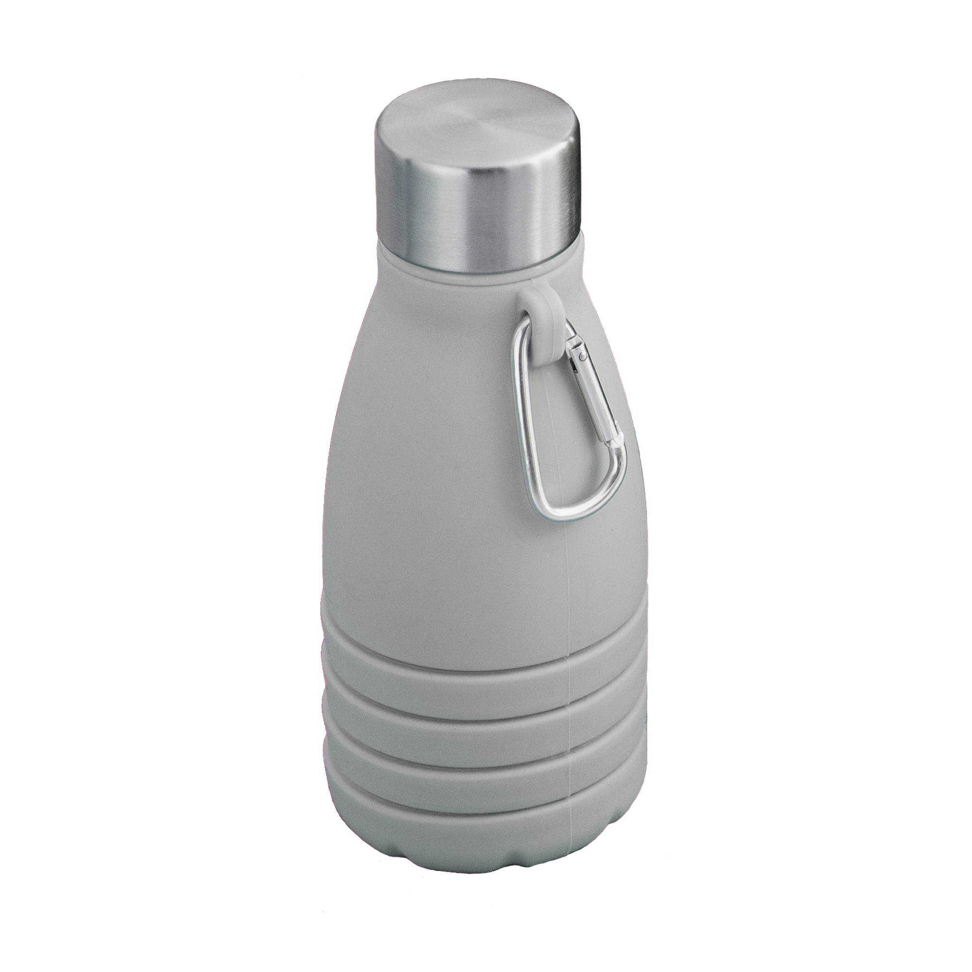 Perfecta para tus aventuras y ocupa mínimo espacio.Botella plegable que reduce su tamaño a 17 cm cuando está vacía, ocupando un mínimo espacio en tu mochila o bolso. Boca de botella plástica. Tapa de acero inoxidable 201 y mosquetón de aluminio plateado. Para ajustar el tamaño de la botella, simplemente retira la tapa y ajusta la altura según tus necesidades.Medidas: Ø 7,5 x 25 cm.