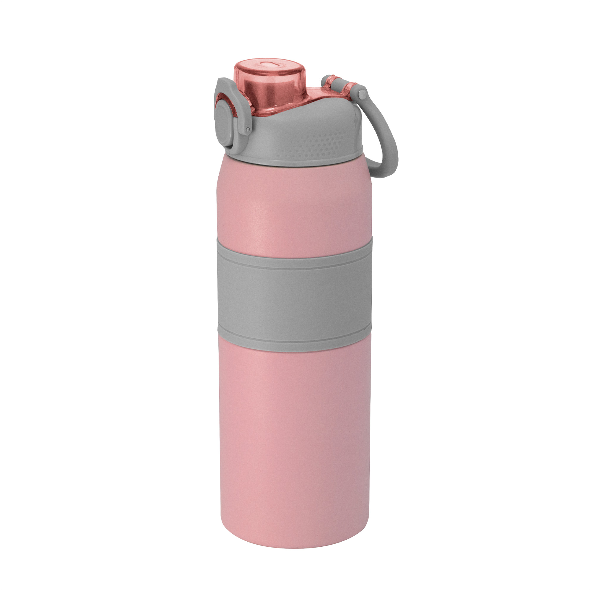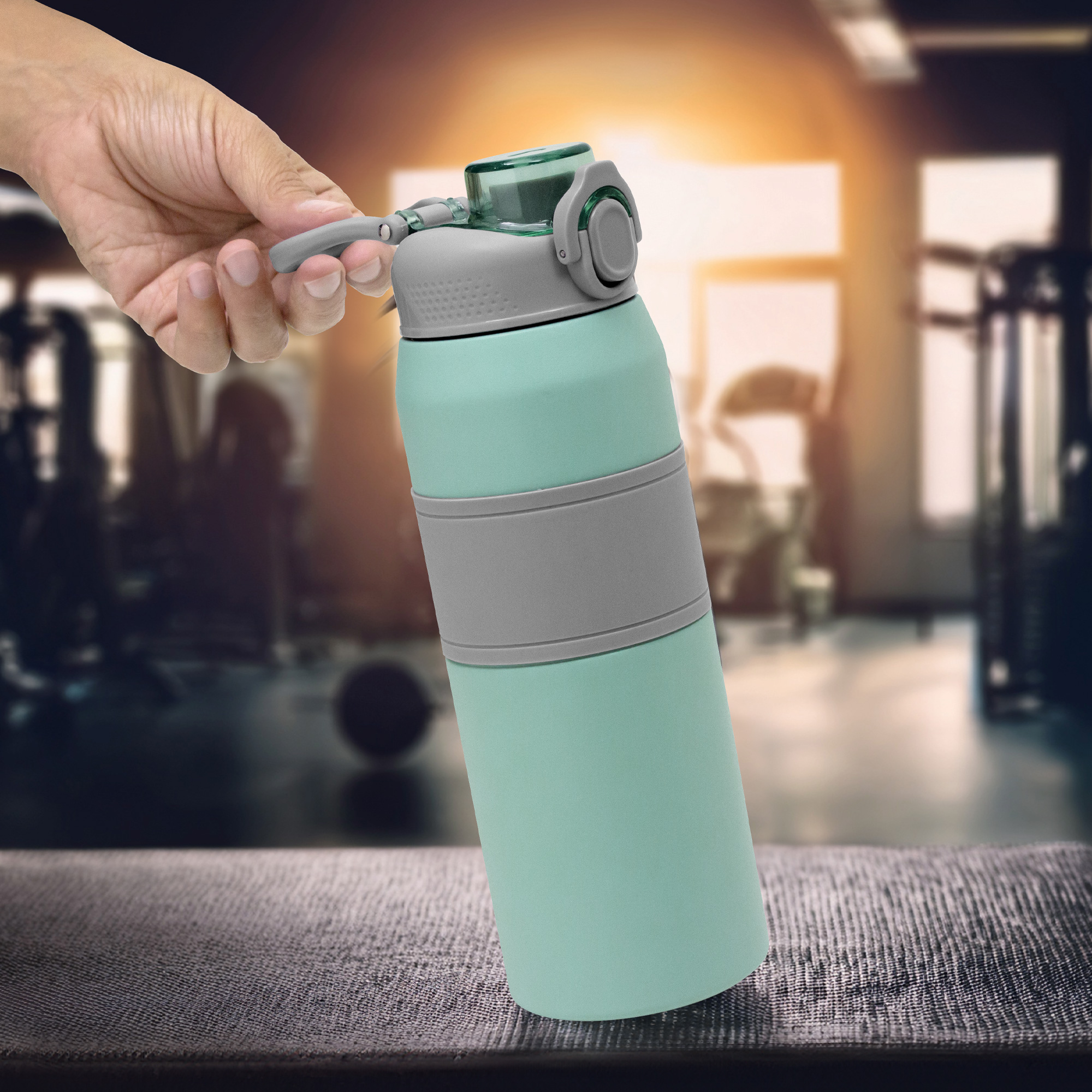 Hidratación a otro nivel.Botella deportiva con doble pared, sellada al vacío. Interior de acero 304 y exterior de acero 201. Pintura powder coat (pintura más duradera y resistente a la corrosión y el paso del tiempo). Tapa plástica a rosca en color gris con anillo de silicona y manija plástica para su agarre, combinada con tapa rebatible en colores translucidos a juego con el color de la botella. Boquilla con sorbete incluido. Grip de silicona color gris para mejor agarre. Mantiene alrededor de 8 hs la temperatura de las bebidas calientes y frías. Medidas: Ø 8 cm x 25 cm.