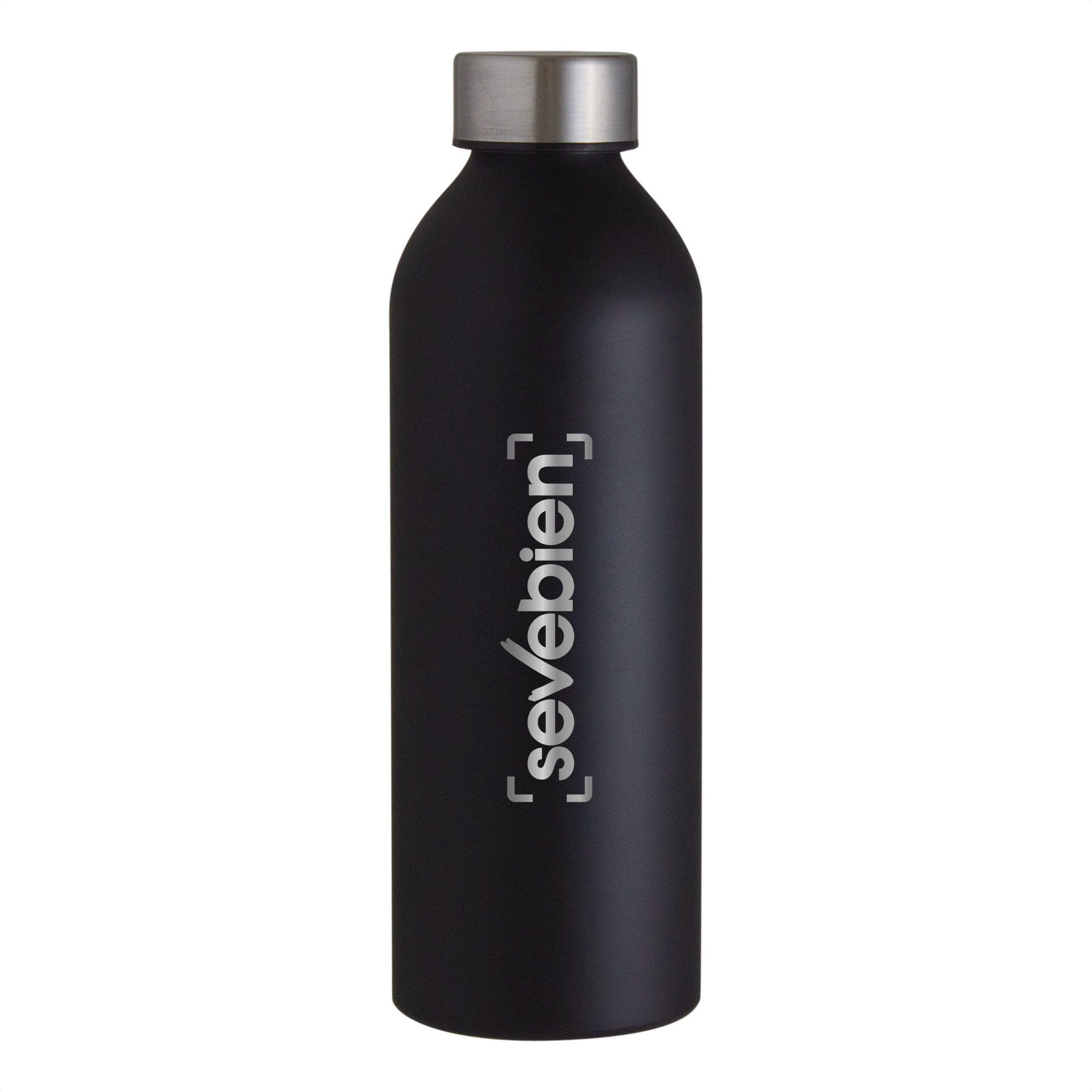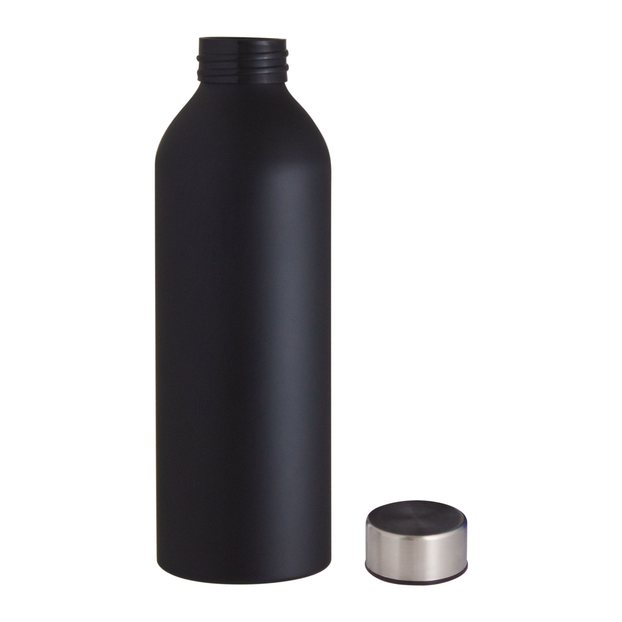 Sencillez y funcionalidad.Botella de aluminio con acabado mate. Tapa a rosca color plata en acero inoxidable 201 y anillo de silicona antiderrame.Medidas: Ø 7,2 x 22,5 cm.
