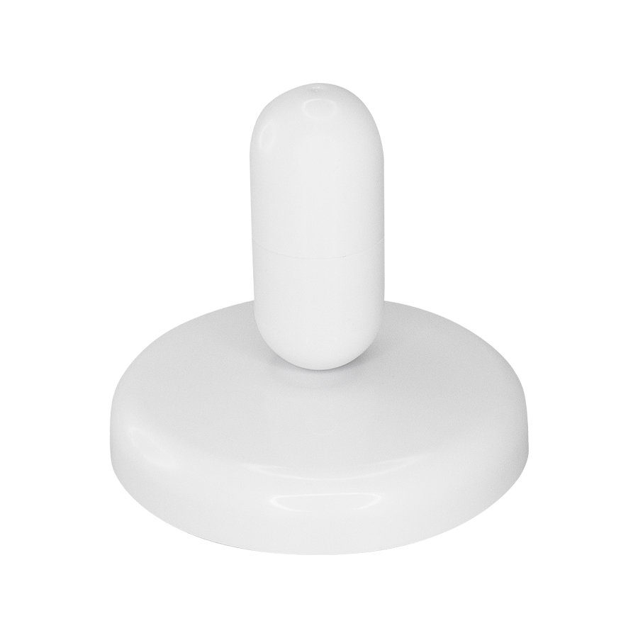 Destacador amarillo «Cápsula» blanca, sobre base plástica blanca. Cuenta con sistema imantado que sostiene la cápsula de pie sobre la base, estabilizándola como «mono porfiado». Amplia área de impresión tanto en la cápsula como en la base. Presentación en caja de regalo blanca. Importante: presionar la punta sobre papel por 3 segundos para que la tinta amarilla baje.