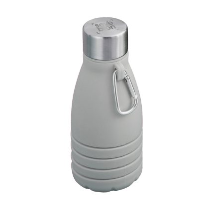 Fácil de llevar a todas partes.Botella de aluminio reciclado. Tapa a rosca plástica con anillo de silicona y con mosquetón