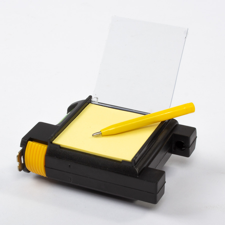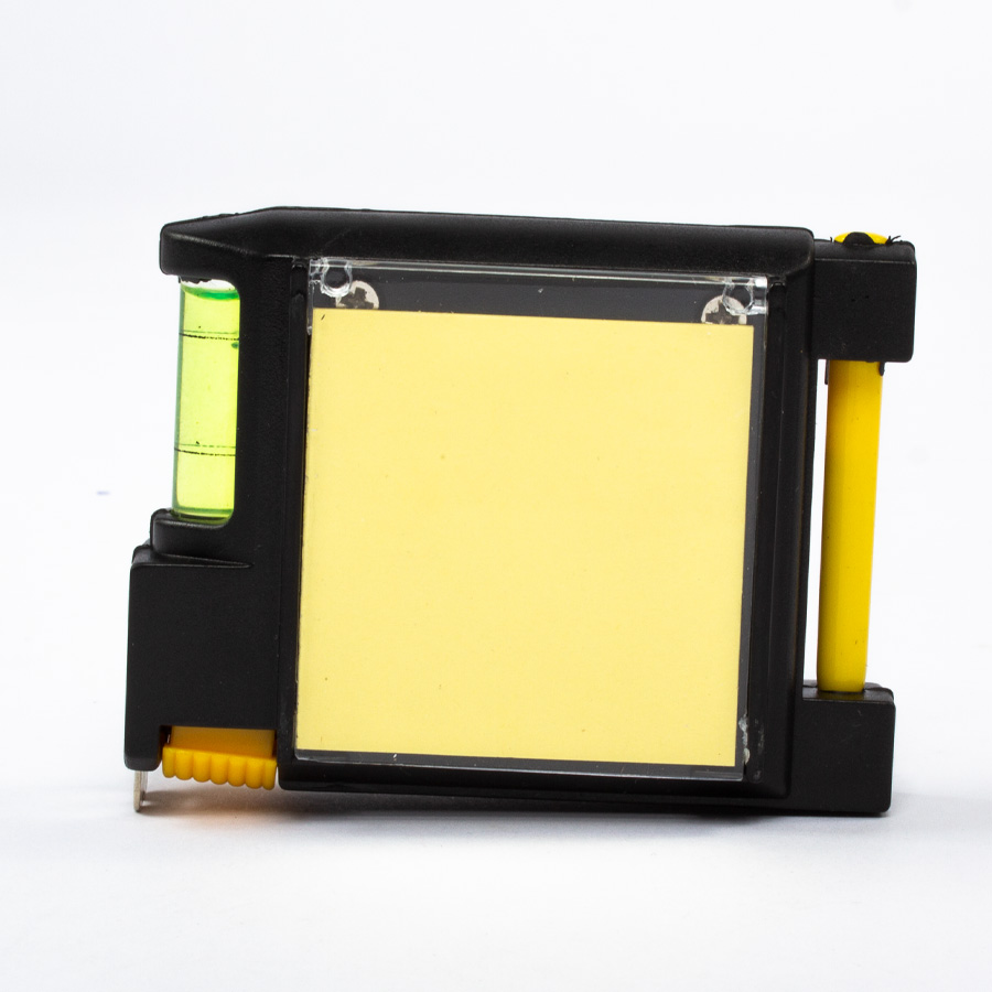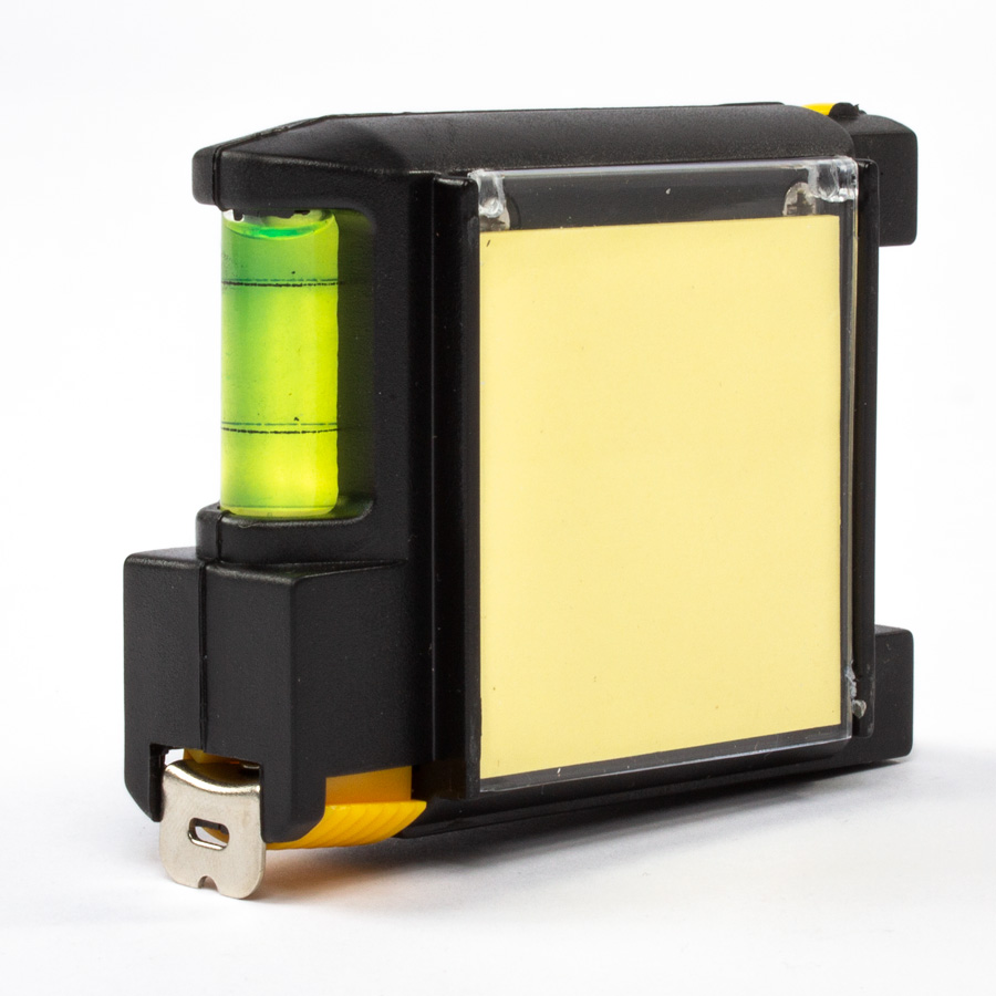 Huincha de medir (metálica-rígida) de 3 mts multifunción. Incluye lápiz pasta, notas adhesivas para apuntes, nivel y abrasadera para bolsillo o cinturón.