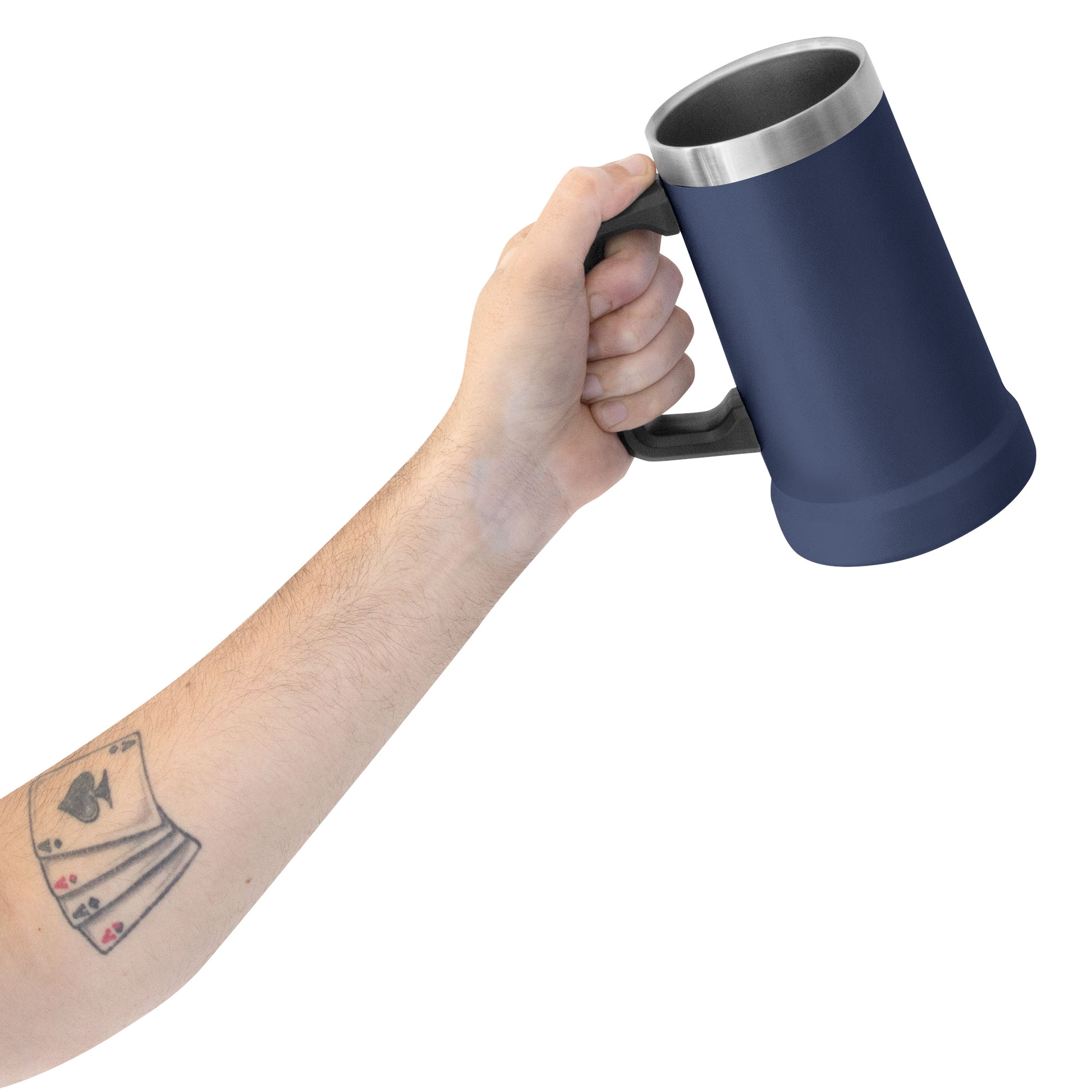 Disfruta tus bebidas frías por más tiempo Jarro cervecero doble pared, sellado al vacío. Interior en acero 304 y exterior en acero 201. Mango Plástico. Pintura Powder coat (pintura más duradera y resistente a la corrosión y el paso del tiempo). Medidas: 17 cm. x Ø 10 cm. (diámetro inferior) y Ø 8,5 cm. (diámetro superior)