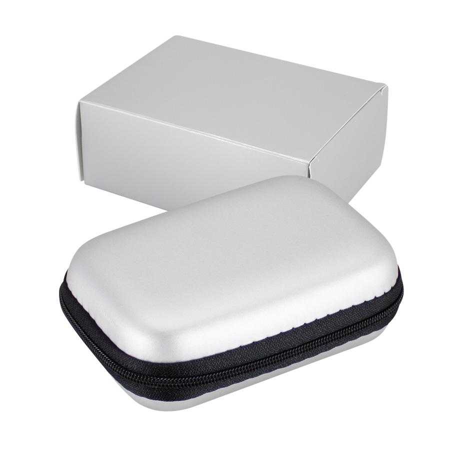 Kit de Conexión para el Automóvil. Contiene cargador USB para encendedor / toma de corriente del automóvil, Power Bank de 2500 mAh, toma-corriente con terminal USB y multi-cable adaptador USB de 1m de largo, con 3 terminales para iPhone / Samsung / Type C. Presentación en estuche EVA pouch plateado con interior negro, en caja de cartulina plateada.