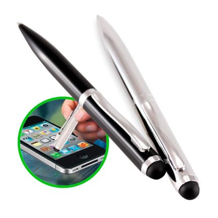 Bolígrafo Metálico modelo «Hotel», con goma posterior negra «Touch-Screen» para pantalla táctil. Escritura negra. • Tamaño: 11 x Ø 1