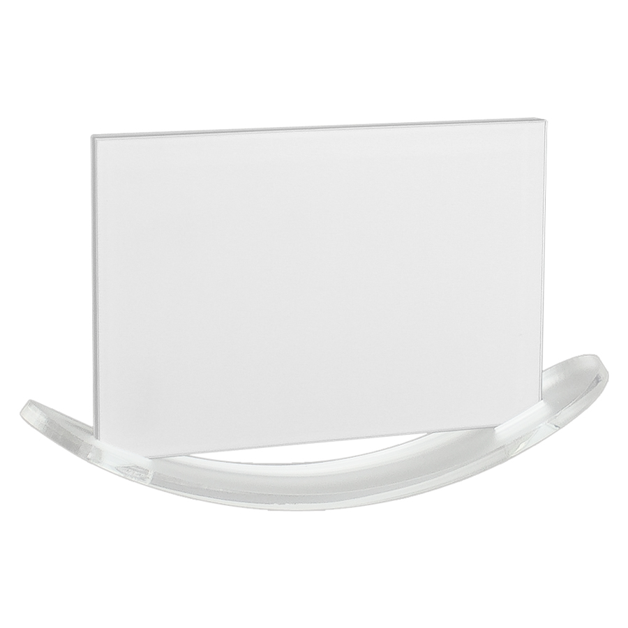 Porta-Retrato balancín para Sublimación. Base curva Acrílico frozen. Porta-Foto de Vidrio de 15.3 x 10.2 x 0.3 cm. Presentación en caja de Cartón blanco.