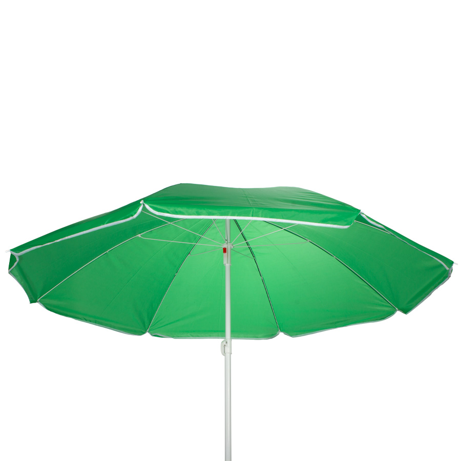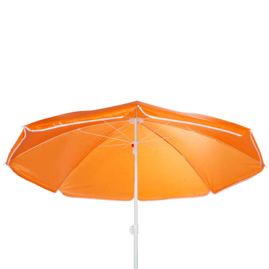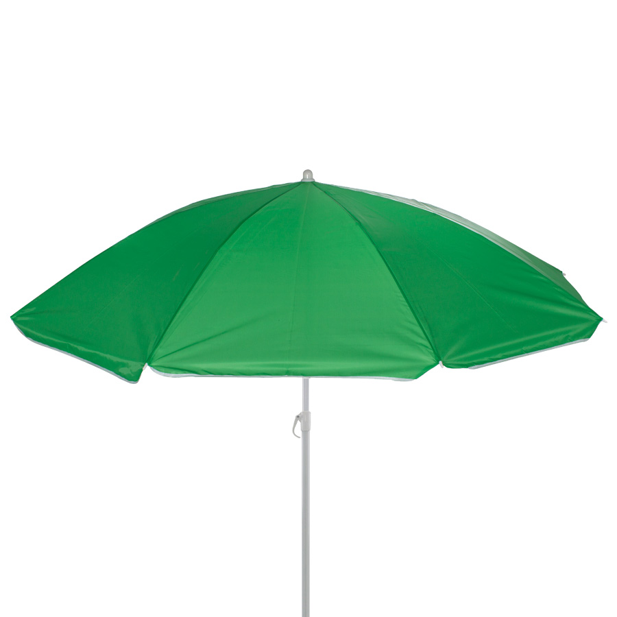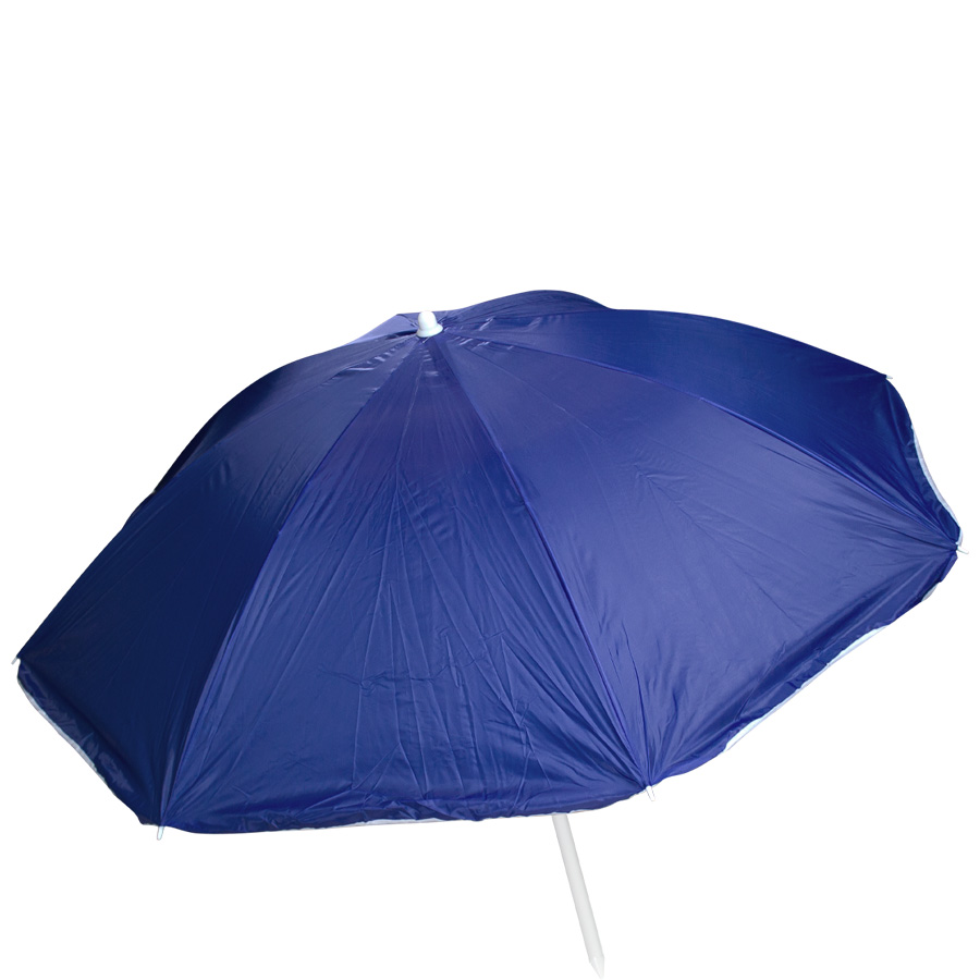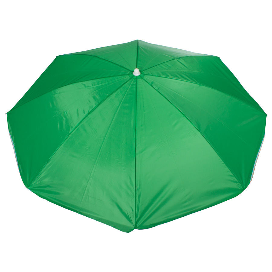 Quitasol de 8 cascos en tela Nylon 190T. Incluye 2 varas metálicas blancas desmontables, la inferior de 101 cm y la superior de 95 cm. Presentación en funda de PVC transparente con broche.