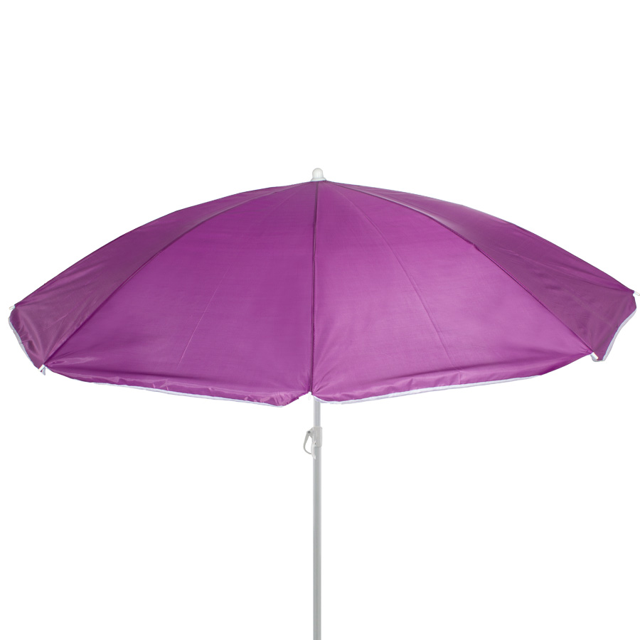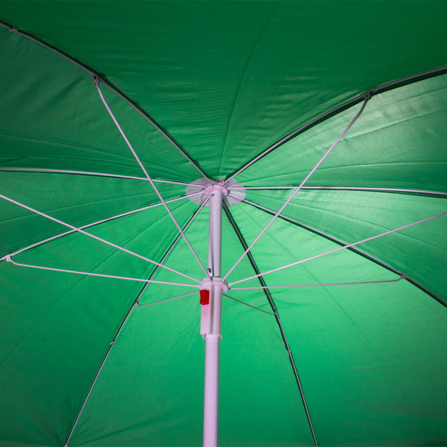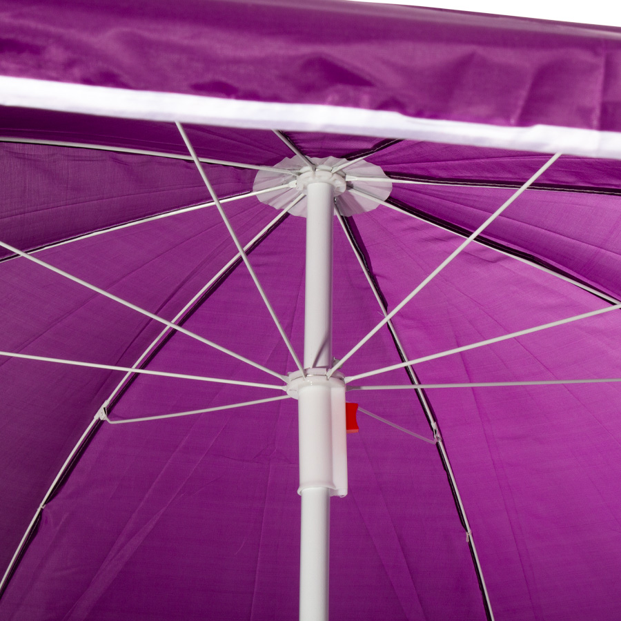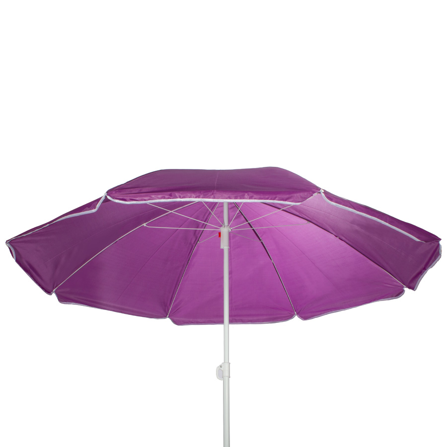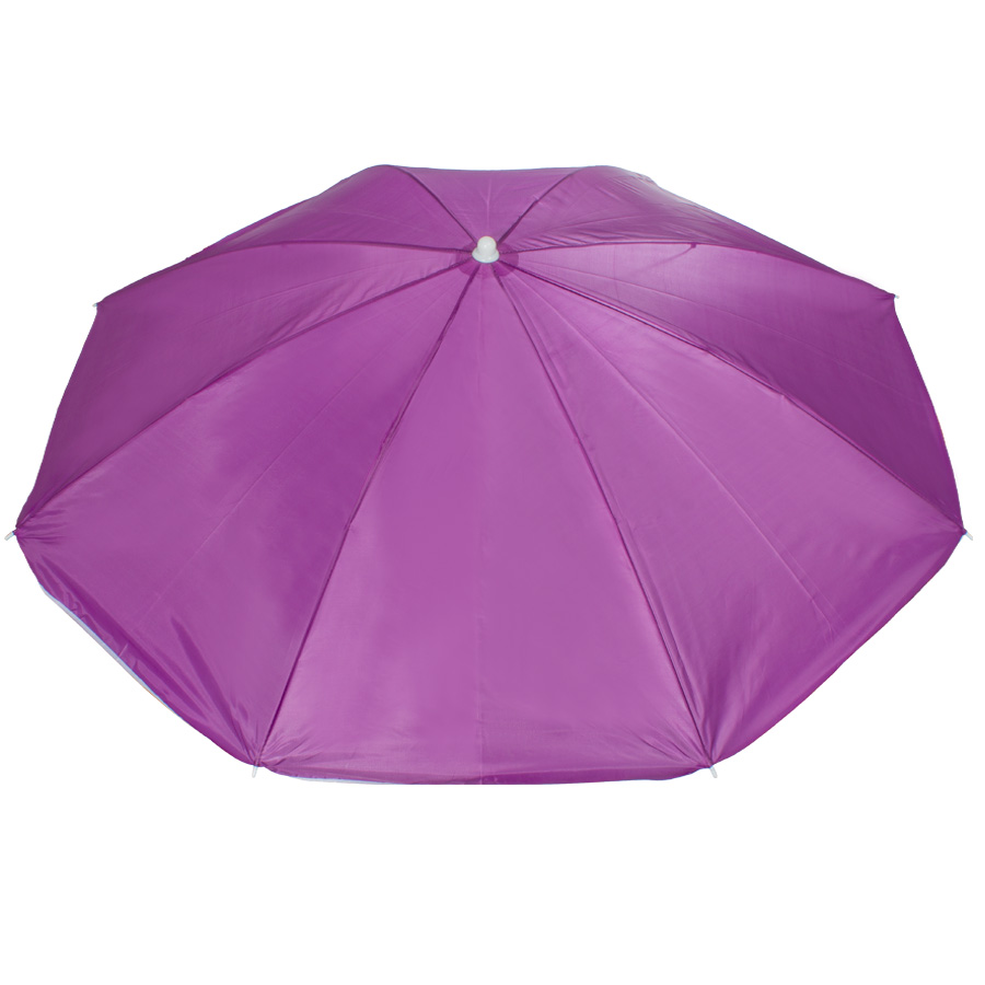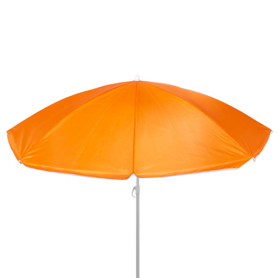 Quitasol de 8 cascos en tela Nylon 190T. Incluye 2 varas metálicas blancas desmontables, la inferior de 101 cm y la superior de 95 cm. Presentación en funda de PVC transparente con broche.
