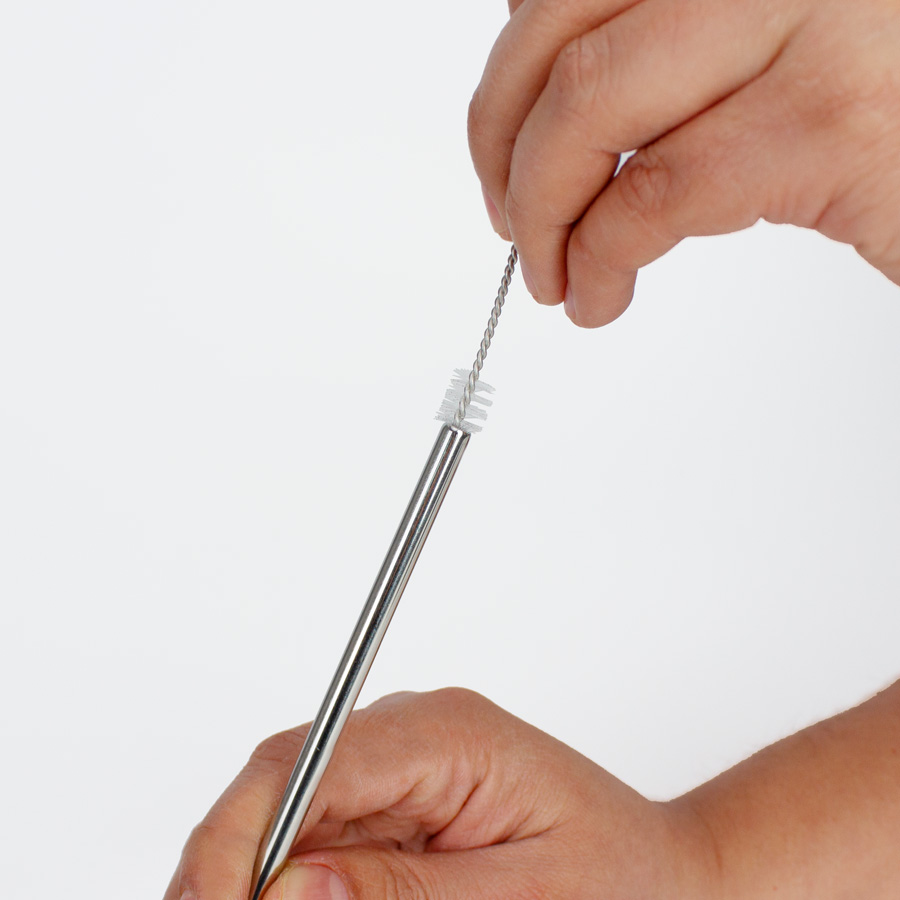 Set de 2 bombillas de acero inoxidable de 21.5cm. de largo c/u + cepillo para limpiar de 22cm de largo , presentados en bolsa de Lino tipo saco color natural de 23.5 x 4 cm. Cuenta con asa-cordón retraíble de Algodón, en la parte superior de la bolsa.