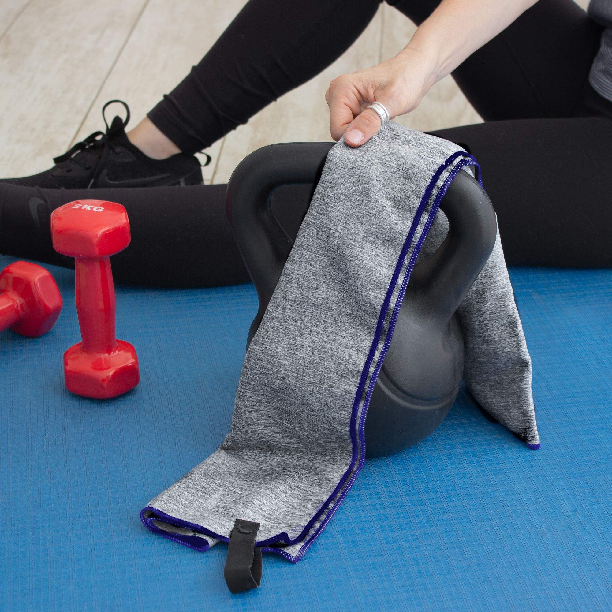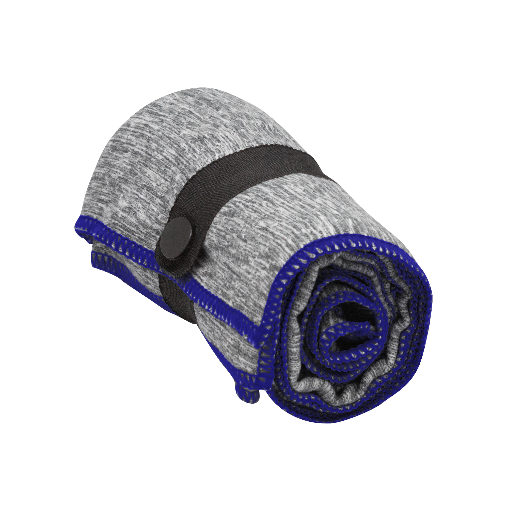 80 x 40 cm. Microfibra. Toalla de microfibra de secado rápido. Poliéster (200 g x m2) catiónico doble cara. Cinta negra que permite enrollar la toalla y aplicar logo.